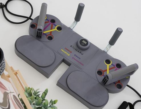 Here is another push-up board that comes with everything you need to work your back, shoulders, triceps, and chest muscles harder. The KEEMARU Push Up Board (KMR-05) has an auto counter that keeps track of your reps. It comes with latex resistance bands to work your body in harder.