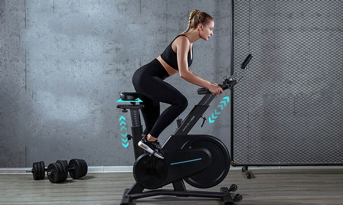 Here is another exercise bike that gives you a solid workout indoors. The OVICX Q200 Magnetic Stationary Bike has adjustable seat, handlebars and resistance. It supports standing, pedestrian, and off-road riding positions. Its handlebars have a pulse reader too.
