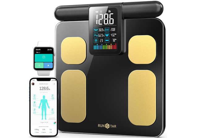 So you would like to closely monitor the changes your body is going through as you exercise and follow a strict diet? The RunSTAR 8-Electrode Body Composition Scale has you covered. It has a handle with 4 electrodes. It also has 4 large electrodes on its top surface. You can create 24 profiles in the companion app.
