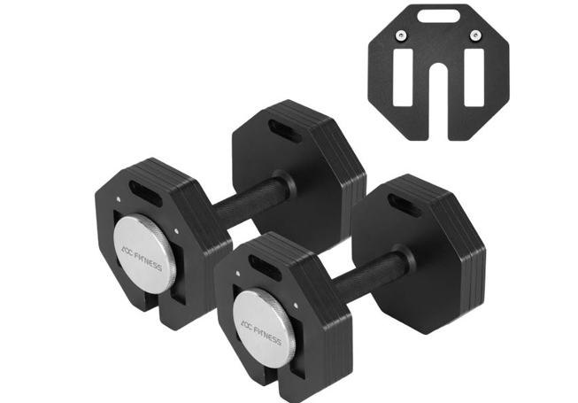 Dumbbells are great for fitness and strength training but they do take a lot of space, especially if you have a large set. The AOC Plug-in Adjustable Dumbbells are alloy steel dumbbells that allow you to quickly adjust the weight. This set is available in 50/80/90lbs weights. You can make changes in 5lbs increments.