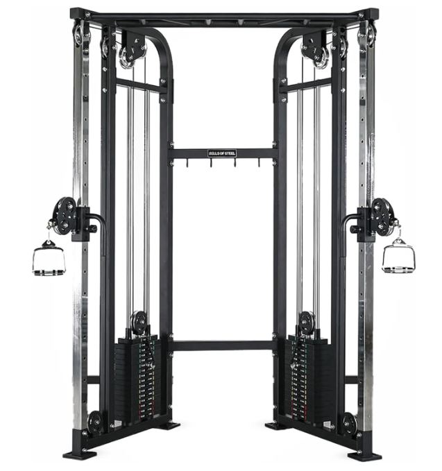 Here is another exercise machine with everything you need to build strength in your body. The Bells of Steel Functional Trainer Cable Machine has dual 160lbs weight stacks and 16 cable heights. It has 14-gauge steel rails, aluminum pulleys, and rubber-encased weight stacks.