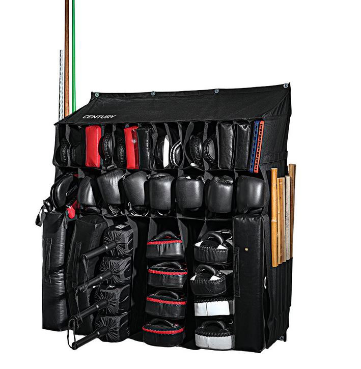 So you run a MMA school? Keeping all your gear organized is going to be much easier with the Century School Organizer. It has space for your sparring gear, shields, and everything in between. It has 3 rows of pockets for your things. Costs under $70 at this time.