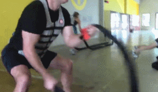 Hyperwear SandRope: a weighted battle rope for an intense core and cardio workout. It is 10 feet long, measuring 2.5″ in diameter.
