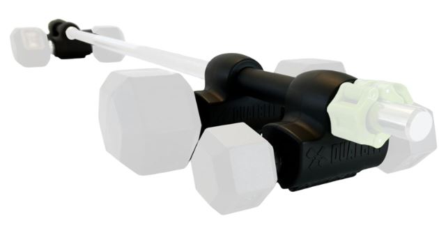 This kit comes with 2 interlocking spacers and 4 Dualbells. It works with dumbbell handles with minimum length of 4.25″.