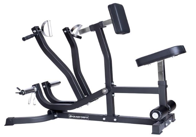 Here is another exercise machine that you can use to work your back muscles. The GearForFit Seated Row Machine is a steel machine with enough padding to keep you comfortable. It has dual action independent arms that allow for simultaneous or alternate back workouts. It comes with fixed and rotating grips.