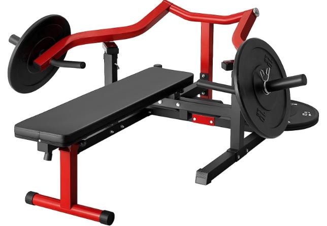 This is the GMWD Chest Press Machine: a piece of equipment that you can use to work your muscles hard and build strength. It has a 11 gauge steel tube construction with an anti-slip base. It has 200lbs capacity per arm. The detachable sleeve can fit 1 and 2 inch plates.