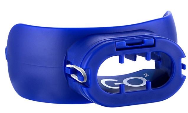 This is the Go2 Endurance Trainer: a workout device that improves breathing and increases oxygen flow. It is comfortable to wear for athletes with or without braces. It is based on the Positive End Expiratory Pressure principle. By using it, you will be able to avoid shortness of breath at higher elevations.