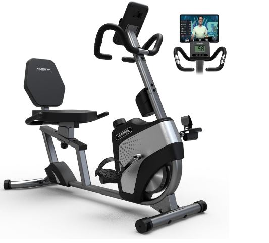 This bike comes with a LCD monitor and a convenient iPad holder. It can be used with Zwift and other popular apps. The HARISON Recumbent Bike can accommodate users from 4.7 to 6.2′.