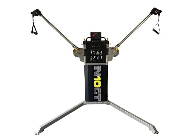 Here is a home gym that uses compressed air for resistance. The IN10CT Functional Trainer allows for 0.1 increments with the push of a button. It has adjustable arms, so you can use it for a variety of workouts. They can move up and down as well as in and out. This can be bolted to the floor or wall or and used freestanding.