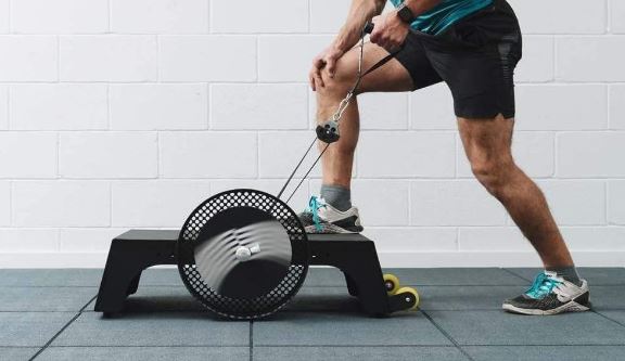 This machine uses inertial to offer high, variable resistance. It weighs only 27kg, so you can easily move it around. The box also has built-in wheels. It comes with a bunch of accessories, including handles, belt, and a vest