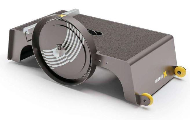 This is the InerceX Box: an inertial training machine that helps you take your strength training to the next level. These are based on a NASA developed technology. It has interchangeable wheels with various weights, so you can adjust workout intensity.