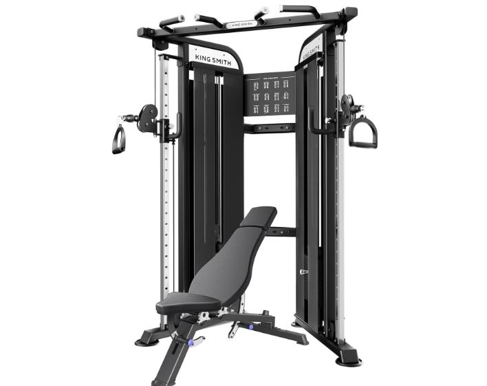 The KINGSMITH Cable Machine has dual independent pulleys with 21 positions to work your entire body. It has a footprint of 54.1″ W x 40.7″ D x 78.7″ H.