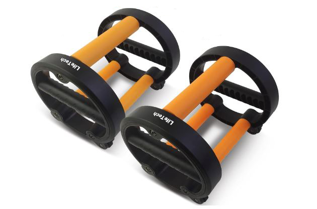 Here is an ab wheel that doubles as a pushup stand. The LifeTech Ab Wheel Roller lets you stretch your hands at two different angles. It has max weight capacity of 400lbs. You can assemble and disassemble this in a second.
