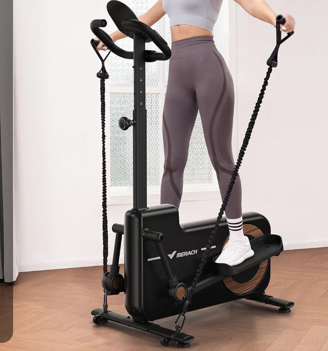 Here is another elliptical machine that gives your body a challenging workout. The MERACH MR-E19 elliptical has walking, HIIT, and butt training modes. It combines with resistance bands to work more muscles in your body. It also has a 5-level adjustable lifting armrest.