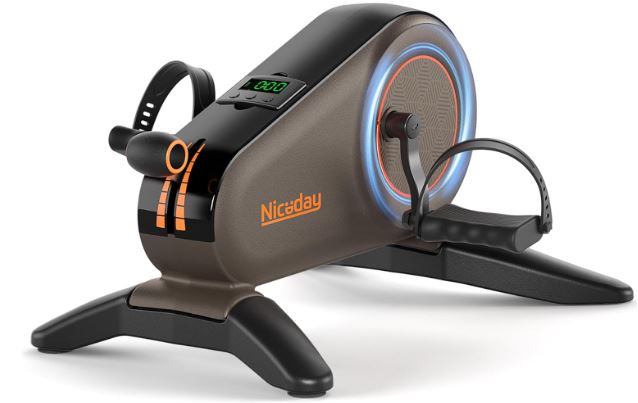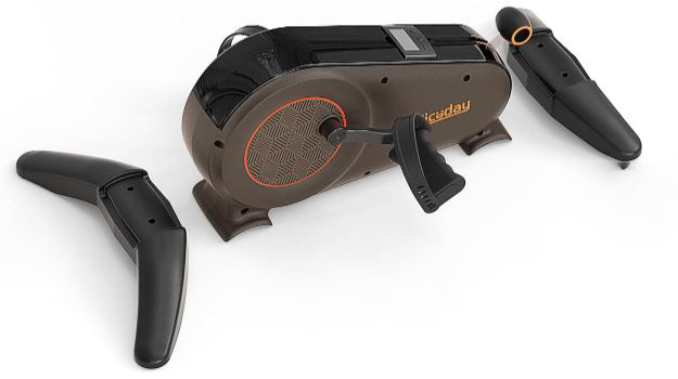 Meet the Niceday Under Desk Bike: a compact physical therapy device that fits under your desk. It has 8 levels of resistance with 40lbs max resistance. You can easily fit this under most desks. This desk bike has a noise rating of <5dB and works your arms and legs.
