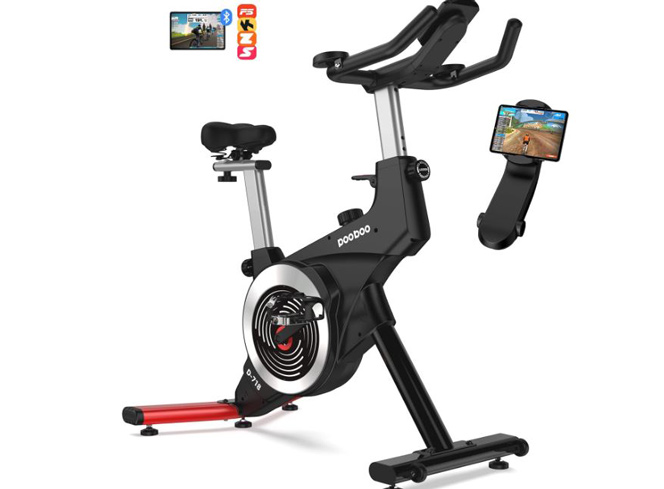This is the Pooboo D718: a compact exercise bike with Bluetooth that makes exercise more fun by combining with your tablet or smartphone. The Pooboo D718 Exercise Bike lets you exercise with FitShow, Zwift, and Kinomap. You will also be able to show time, speed, distance, and calories burned.
