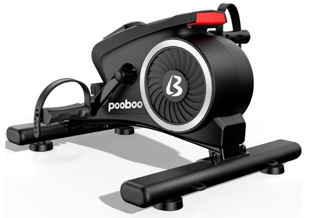 Getting your feet moving is one way to burn calories while getting work done or watching TV. The pooboo Under Desk Bike can help with that. It is a mini exercise bike with 16 resistance levels. You can put it on your desk to work your arms too. This tiny exercise bike uses 4 magnets for resistance. It has a noise rating of under 15dB, so it is pretty quiet.