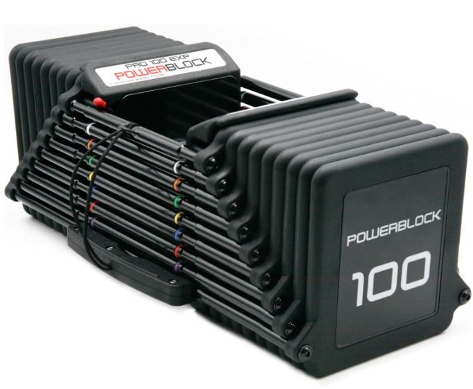 Dumbbells are great for strength training but most of us don’t have room for a lot of them. The PowerBlock Pro 100 address that. Its weight is adjustable from 5 to 100lbs, with expansion kits. You can make adjustments with the magnetic pin. You can use these dumbbells with PowerBlock’s kettle handle curl bars, and other tools.