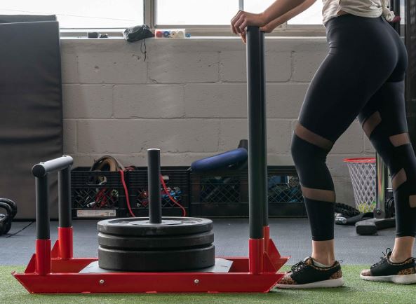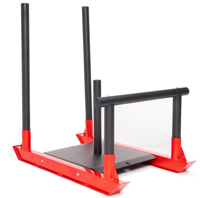 This sled is great for grass, turf, track, and other surfaces. You can use this for glutes, calves, hips, back, core, and shoulder training. It has a footprint of 40 x 23.5 x39.75″.