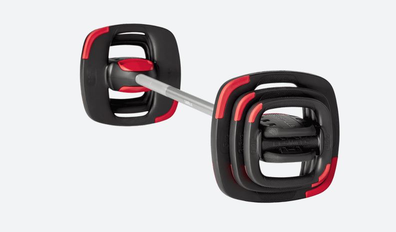 Meet the SMARTBAR: a neat barbell that helps activate the right muscles in your body to make your body stronger. You can use it with weights to do squats, rows, and other moves. This particular kit comes with 1kg, 2.5kg, and 5kg plates as well as a barbell.