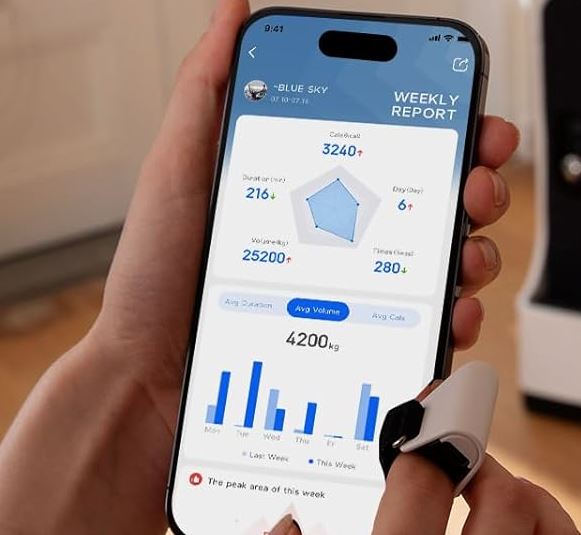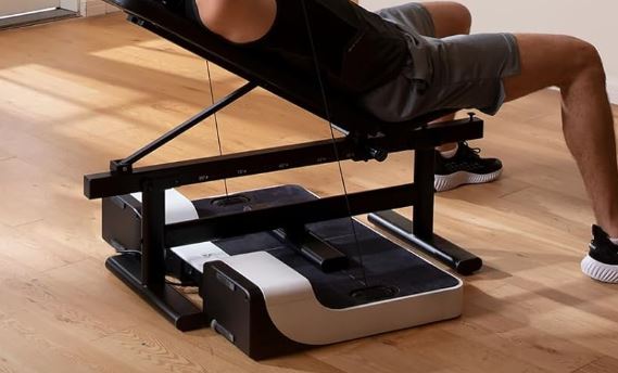This gym has a spotter mode to automatically lower the resistance when you have overloaded itself. This particular kit comes with an adjustable barbell, bench, and tricep rope.