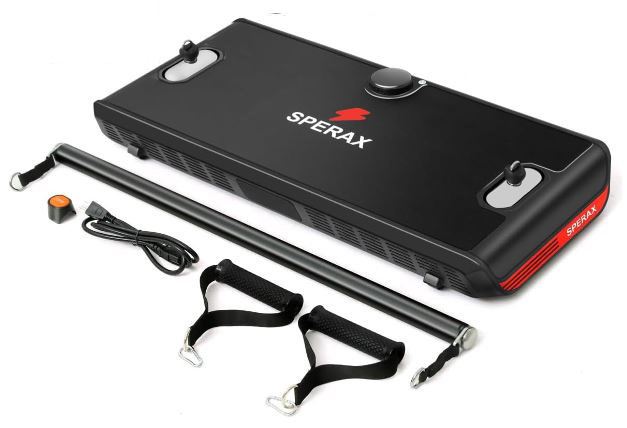 The resistance bar has a wireless switch, so you can easily activate resistance. You can use it to perform squats, deadlifts, and more. The Sperax Gym has a footprint of 20 x 47.4 inches.