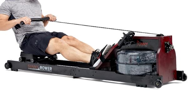 Here is another water rower that gives you a natural rowing experience indoors. The Sunny Health & Fitness Foldable Wooden Water Rower (SF-RW522074) comes with Bluetooth connectivity and works with the SunnyFit app. It features dynamic resistance, so the more effort you put in, the harder your workout gets.
