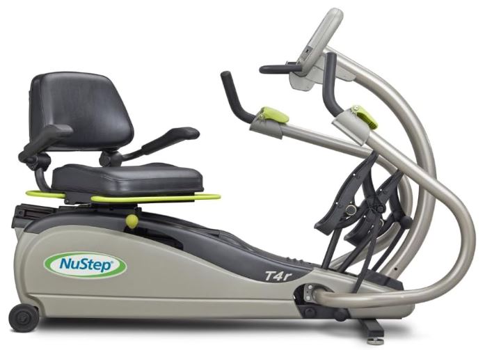 Here is another exercise machine that gives you a low impact workout. The T4r Recumbent Cross Trainer has 10 resistance levels for you to choose from. It has a wheelchair height seat that swivels 360 degrees. You can control step length. You can also adjust arm and seat positions.