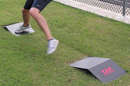 Meet the TAP Lateral Plyo Angles: an exercise tool that helps you increase your lateral power and explosivity. These can be used to perform a wide variety of workouts to improve lateral movement, hip strength, and balance the strength of your lower half. You can make your exercises more challenging by increasing the distance between the angled platforms.