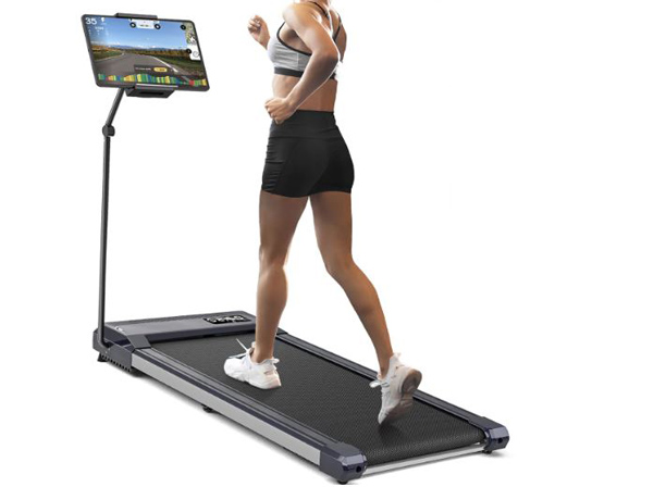 Here is an affordable smart treadmill that you can use anywhere to get your body working. The Wellfit Walking Pad combines with the WELLFIT app that has over 25 preset programs. It has a speed range of 0.6 to 3.8mph. It has a noise rating of 40dB. It has a 2.5HP silent motor and can handle loads up to 300lbs.