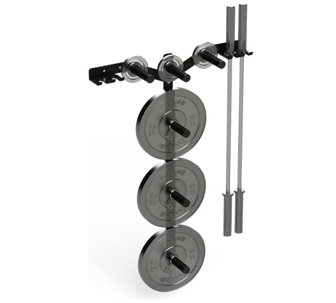 Those of you serious about strength training probably have a bunch of barbells and Olympic weights sitting around in your home gym. The Yes4All 6 Pegs & 4 Barbell Storage Racks help you keep things organized. It can handle up to 1190lbs of weight. This wall mounted plate tree and barbell holder has spring collars to secure your weights.